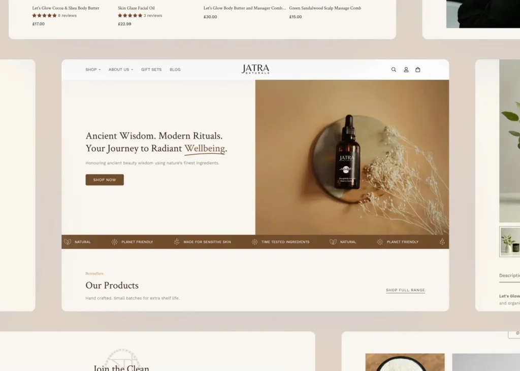 Jatra Naturals is an Edinburgh-based beauty brand specializing in skincare products made from natural, ethically-sourced ingredients. Known for blending traditional knowledge with modern beauty standards, they built a loyal following through their commitment to wellness and sustainability. However, their existing website wasn’t reflecting the premium quality of their products or converting visitors effectively. Kee Digital Media redesigned their ecommerce platform to create a refined digital experience that matches their product quality, resulting in a 43% increase in sales and positioning them for expansion across new UK markets.